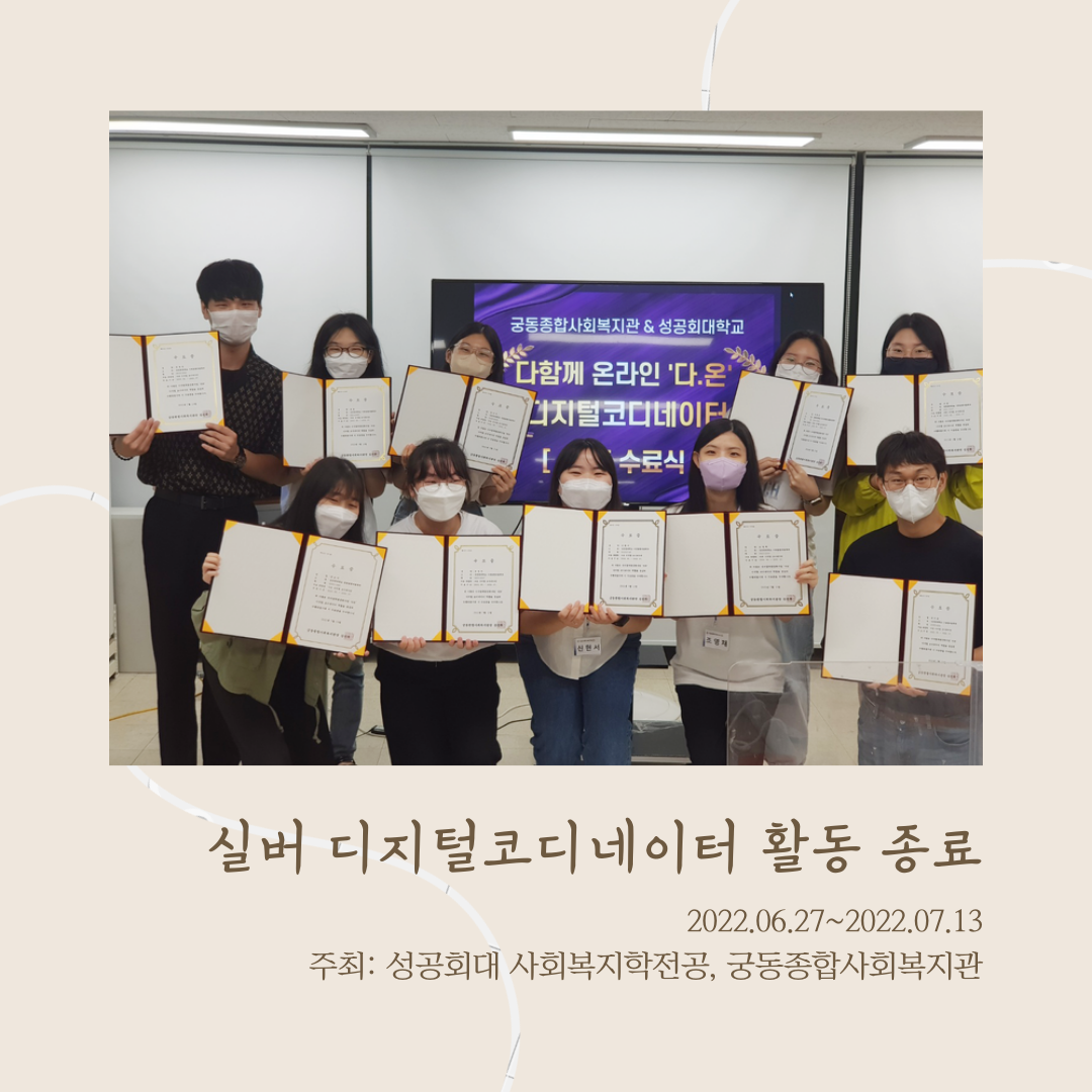 fnctId=bbs,fnctNo=114 게시물 검색 검색하기 제목 작성자 12건, 현재페이지: 1/2 게시글 리스트 8기 다문화멘토링 작성일 2024.06.17 작성자 사회융합자율학부 조회 1335 2023년도 굿네이버스 NGO 봉사단 4기 작성일 2023.02.26 작성자 사회복지학전공 조회 3128 굿네이버스 굿체인저스 작성일 2022.11.20 작성자 사회복지학전공 조회 3174 비교과활동 작성일 2022.11.18 작성자 사회복지학전공 조회 3193 사회복지학전공 인스타그램 계정 작성일 2022.07.15 작성자 사회복지학전공 조회 3409 노인복지 디지털코디네이터 1기 수료식 작성일 2022.07.14 작성자 사회복지학전공 조회 3298 다문화멘토단 5기 활동사진 작성일 2022.07.14 작성자 사회복지학전공 조회 3293 노인복지 디지털코디네이터 1기 활동사진 작성일 2022.07.14 작성자 사회복지학전공 조회 3286 다온 노인복지 디지털코디네이터 발대식 작성일 2022.07.13 작성자 사회복지학전공 조회 3301 다문화멘토링 활동 간담회 작성일 2022.07.13 작성자 사회복지학전공 조회 3304 굿네이버스 졸업생 취업특강 작성일 2022.07.13 작성자 사회복지학전공 조회 3249 다문화멘토링 활동가 5기 발대식 작성일 2022.07.13 작성자 사회복지학전공 조회 3261 처음 11 1 끝